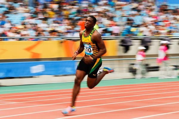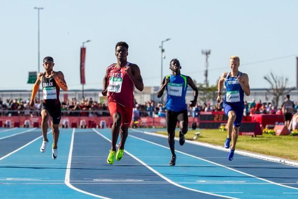 Abdelaziz Mohamed of Qatar winning the Youth Olympic Games 200m title